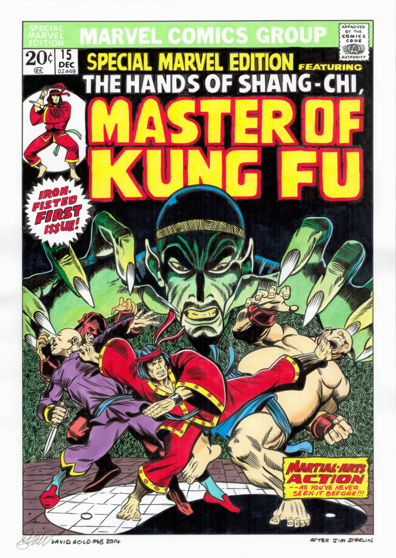 Special Marvel Editon #15 Master of Kung Fu Cover Recreation by David Golding in pencil and ink.