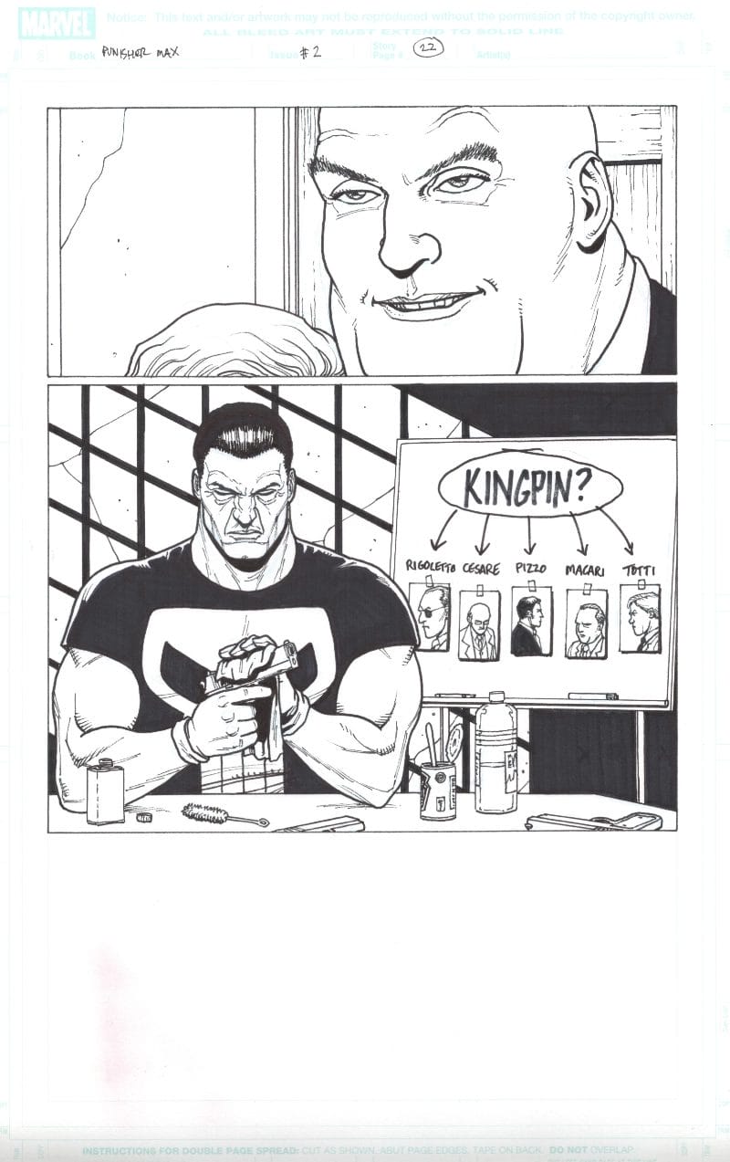 Punisher Max #2 Page 22 by Steve Dillon. Art is approximately 11″ x 17″ and on official Marvel board.